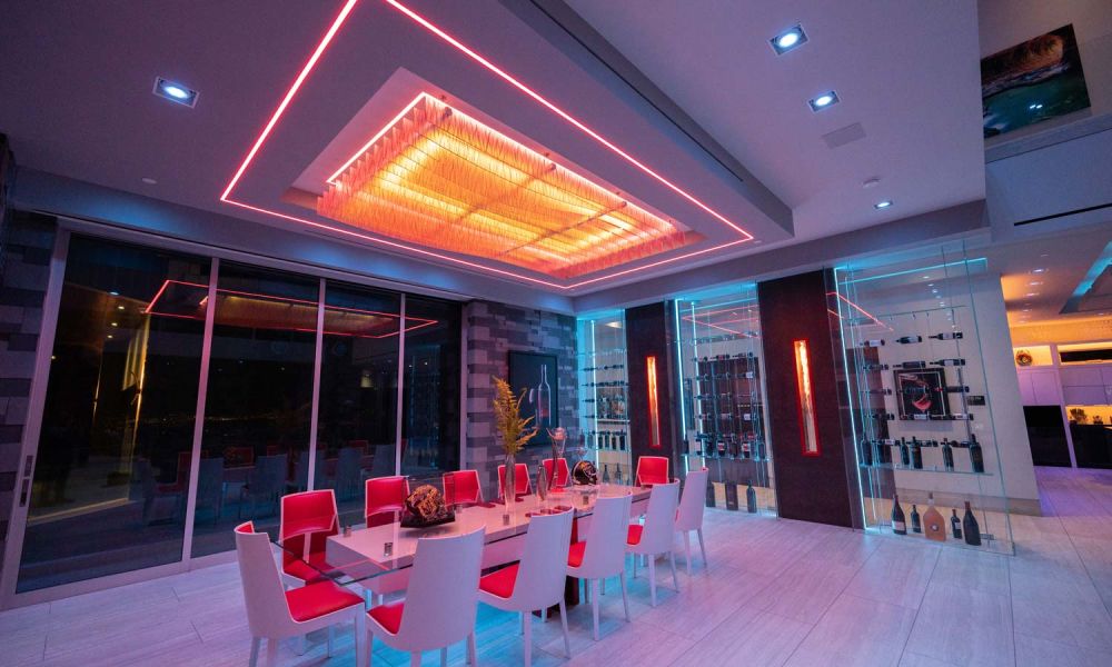 The Toti Residence is a true custom home that incorporates all of Eagle Sentry’s advanced technology. The Toti Residence features one of the most unique and non-traditional lighting design systems in the Valley. Leveraging the latest in LED technology, Eagle Sentry created multiple spaces that showcase uniformed, dot free, and tunable white linear lighting for a truly breathtaking experience. Lighting control is seamlessly integrated with our smart Savant automation system that adjusts the color temperature automatically to complement a healthy circadian rhythm.