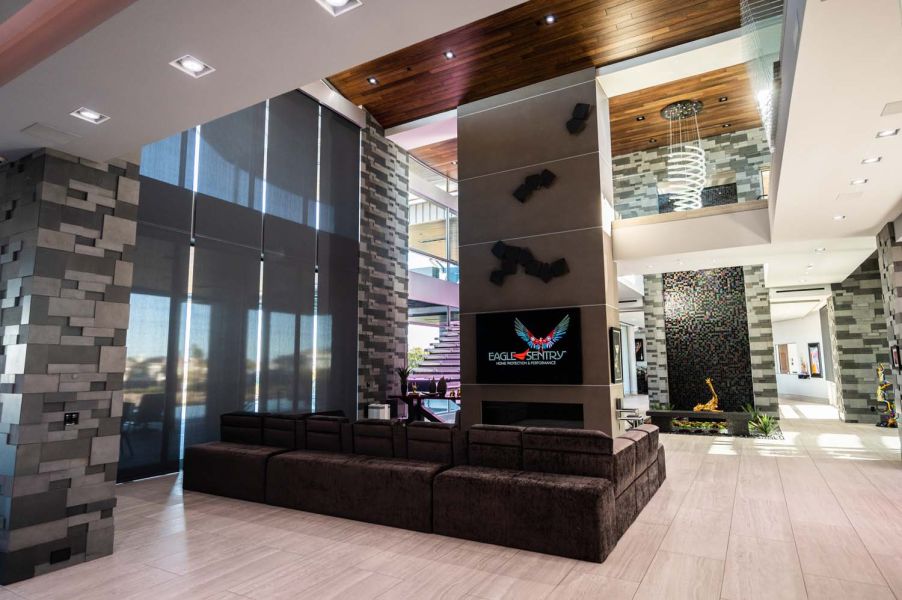 The Harris Residence is a high-end, production home located in the heart of a gated Henderson community. This home leverages the best in class security and surveillance options designed with privacy and protection in mind. While this residence doesn’t include all of Eagle Sentry’s solutions, it does feature a robust Savant controlled home theater optimized for entertaining.